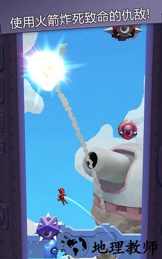 2. 操作与策略融合:简单点击与滑屏实现跳跃、冲刺,但需精准判断炸弹轨迹与能量消耗,例如冲刺攻击需积累爆发引擎能量,导弹CD限制则要求玩家合理规划攻击节奏。