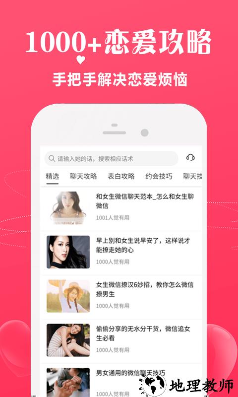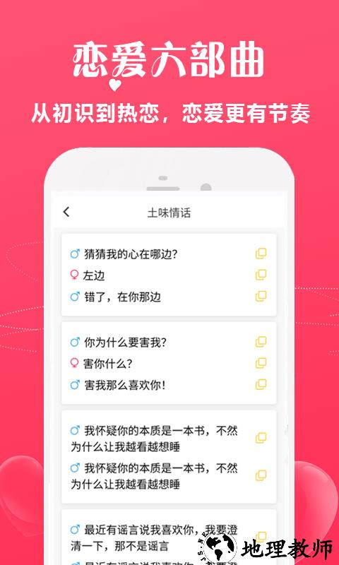 1. 海量话术:软件内拥有超过4万的恋爱聊天话术,涵盖了各种场景和话题,用户可以根据自己的需求进行搜索和复制。