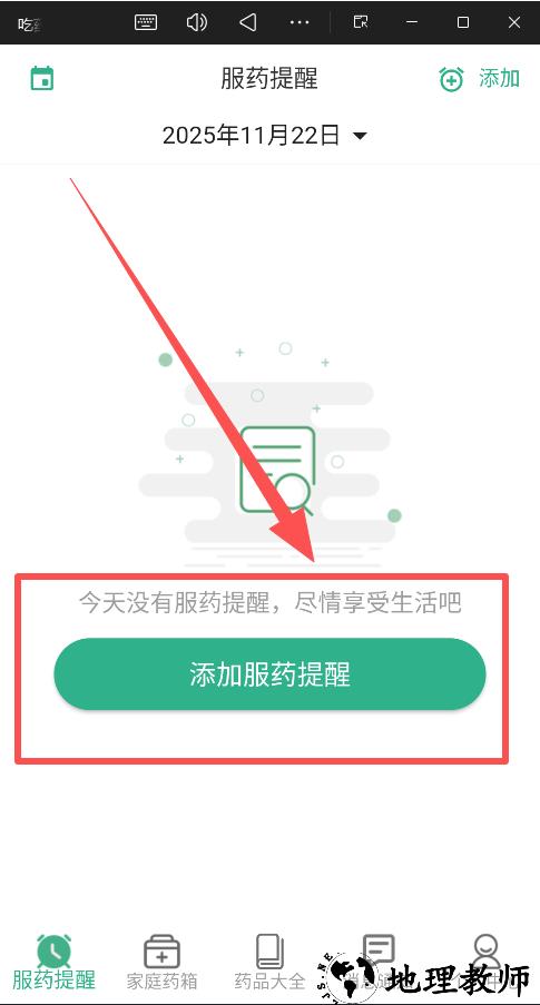 2、用户可以在预约提醒里设置当天的服药提醒,首先输入药品的具体名称。