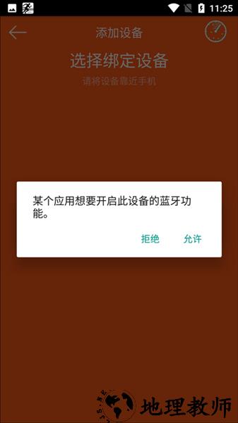 2、点击添加设备选项后,系统会弹出开启蓝牙的提示,按照提示完成蓝牙开启操作就行。