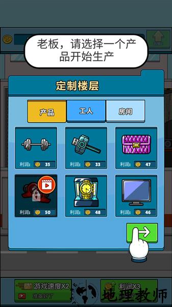 2、然后即可正式开始游戏,点击左下角游戏速度称×2,玩家可提升头游戏速度,以及提升利润;