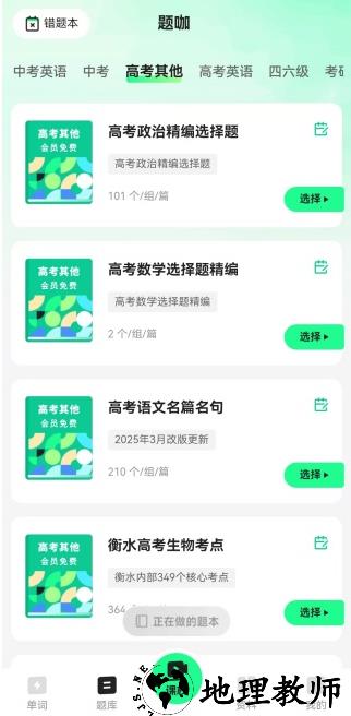 3、进入对应板块后,可挑选不同题库资源,自主安排学习进度。