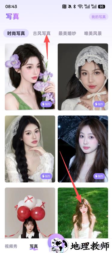 3、点击 “写真” 模块,可自由挑选不同类型写真风格进行拍摄。