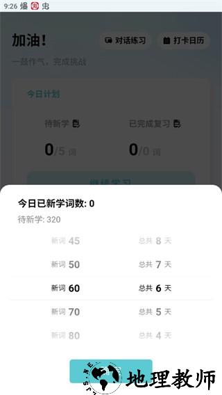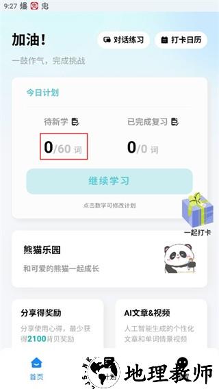 3、确定目标词汇后返回首页,即可看到今日计划已同步更新。