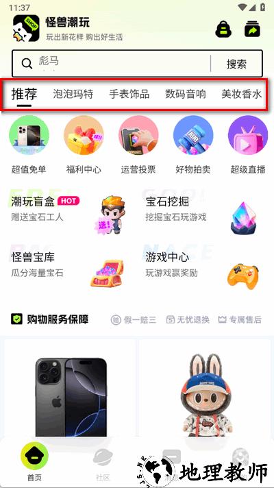 1、下载安装怪兽潮玩 app,完成注册登录后进入首页。