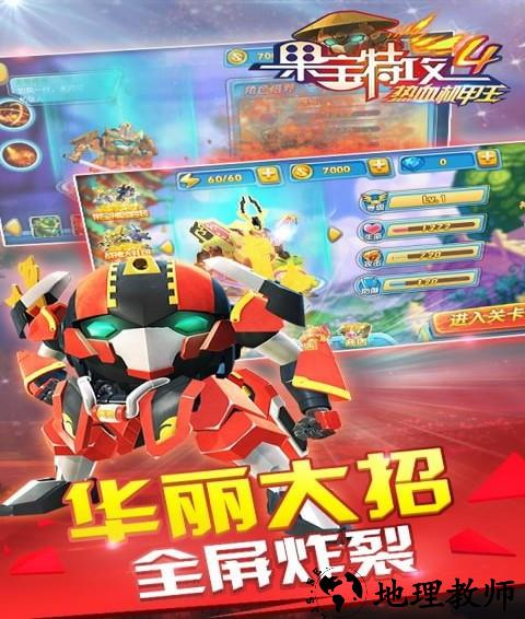 2. 机甲变身系统:玩家可以驾驶果宝机甲进行战斗,并能在关键时刻变身,释放华丽攻击,增强战斗力。