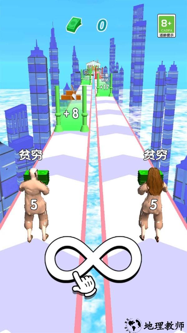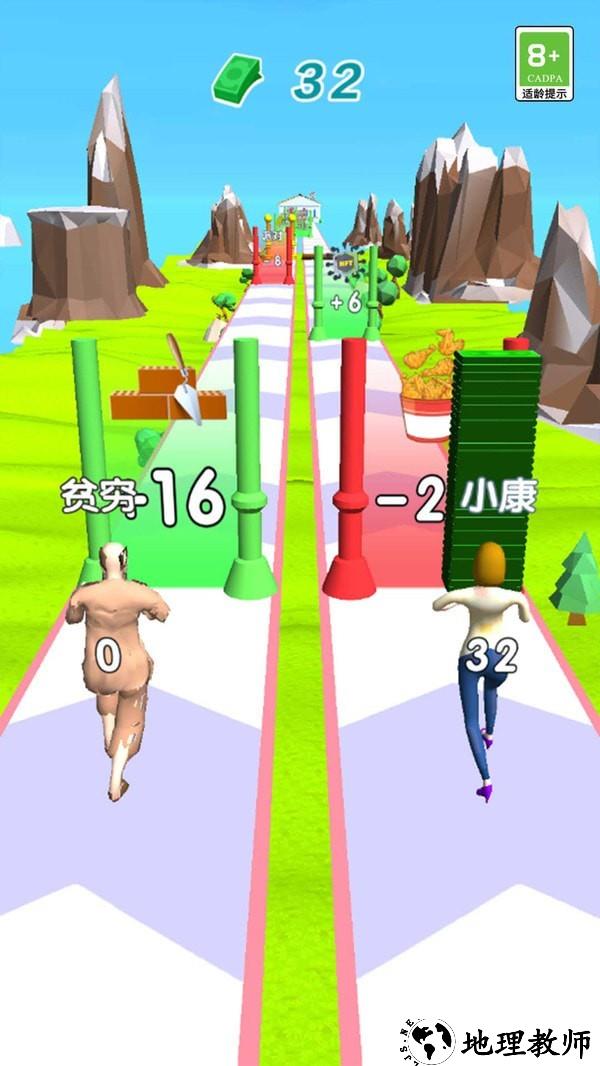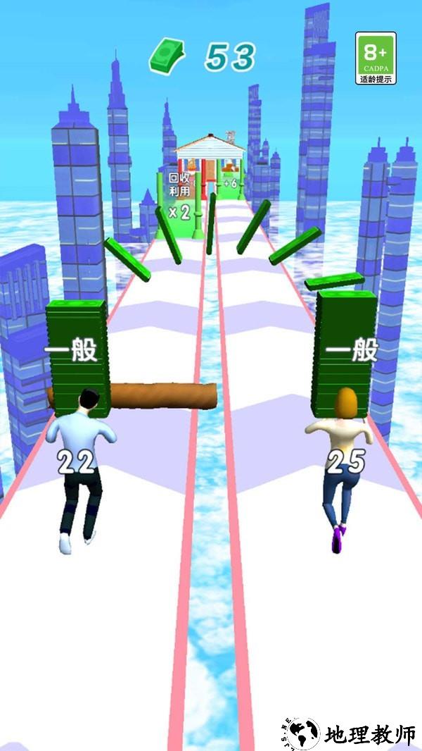 2. 在这个世界中,玩家需要不断挑战各种关卡,躲避障碍物,收集钞票来提升自己的财富值。