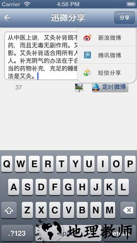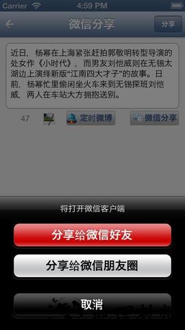 文字附带其图片通过本机微信发送到微信好友和朋友圈共享。