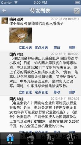 3、新增待发列表功能,方便用户管理定时微博的列表,系统后台默认每隔两小时发送一条定时微博。