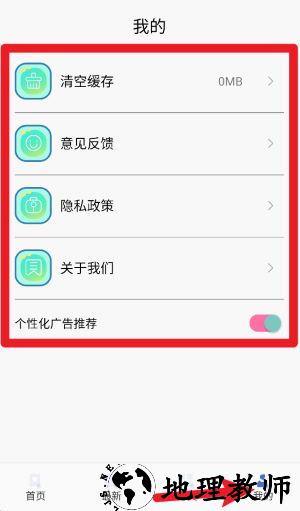 1、打开APP,点击右下角我的图标,进入个人中心界面,查看缓存管理、反馈、隐私政策等功能设置内容。