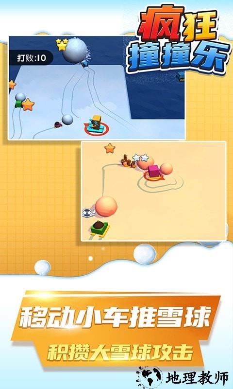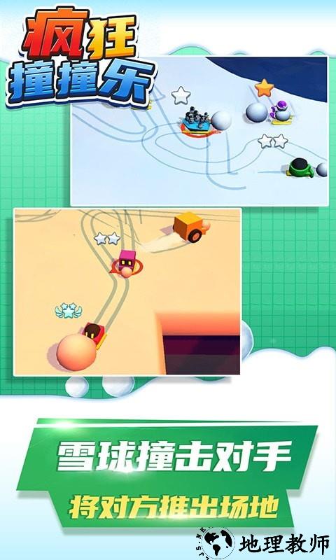 这里的一切都是通过你手中的雪球的撞击来进行的,感到有趣的话就快来试试吧,这个疯狂撞撞乐中玩家将在这里借助雪球的力量去撞击对手,如果成功将对手推出游戏场地就可以完成通关,所以雪球的大小很重要,你可以移动小车来获得更多的雪球体积,积攒力量,很有意思。