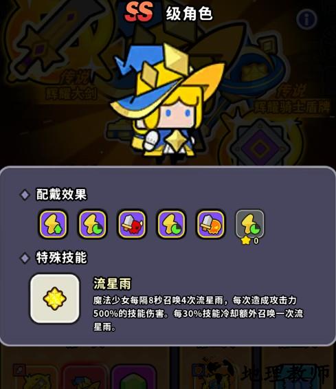 技能: 每8秒召唤4波流星雨,每波造成500%攻击伤害。技能冷却属性每达到30%,就能额外召唤一次。