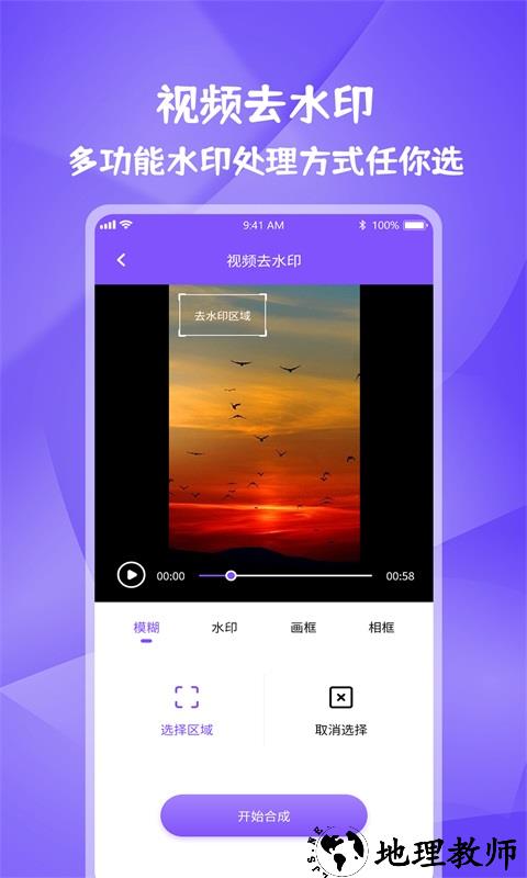 1. 操作流程:视频处理需点击“视频去水印”→框选水印区域→设置生效时间→AI自动处理;图片处理支持涂抹/框选双模式,发丝级修复证件照水印。