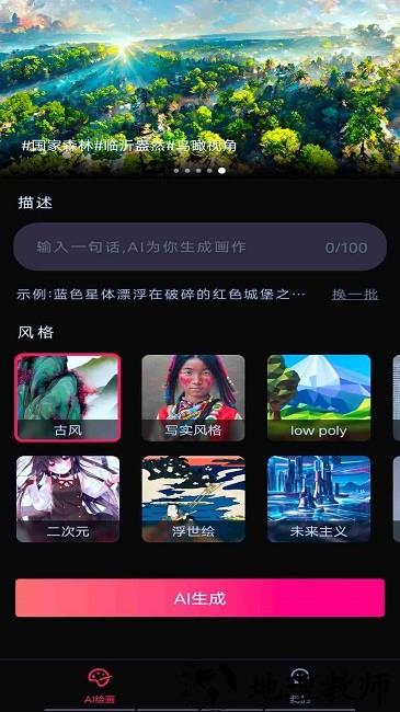 有了这个ai绘画软件,小伙伴们就能利用这个软件来实验自己的奇思妙想了,你能够在软件上将自己的一些天马行空的想法通过软件的AI自动化绘画功能来一键生成画作,让自己的想法能够清楚地展现出来。