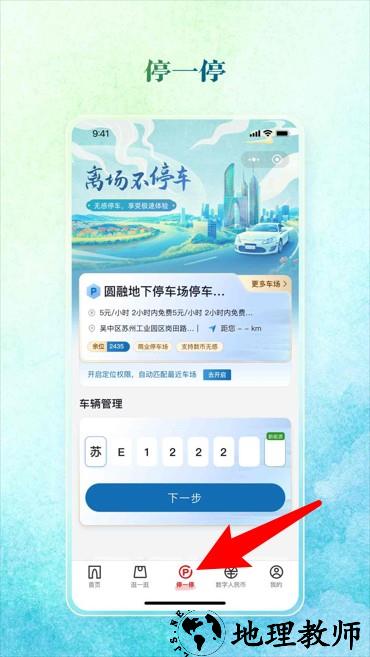 4.点击停一停页面中的车牌管理输入车牌号信息,可查询停车记录与停车场信息。