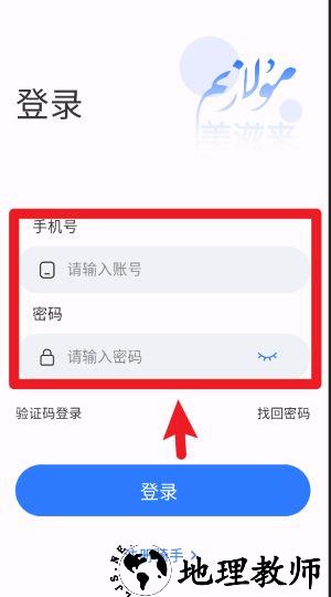 1、登录页面需输入手机号与密码信息,支持验证码登录和密码找回等多种方式。