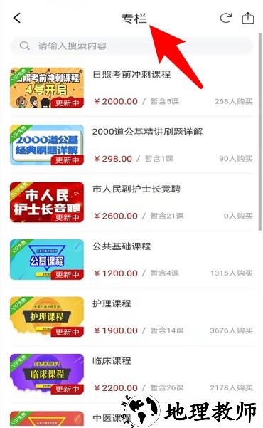 3.进入专栏页面可浏览各类课程内容,涵盖医护、公职、中医等考试方向。