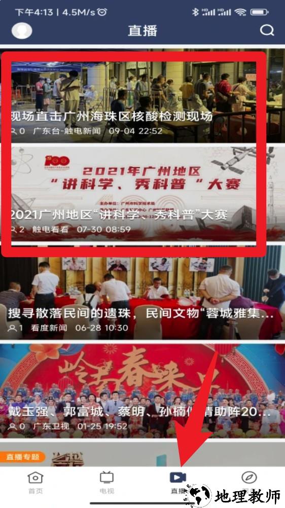 3.前往直播页面,可查看实时进行中的新闻事件与直播节目,点击画面即可进入全屏观看。
