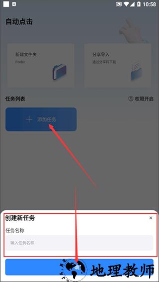 1、开启自动按键点击app,进入后授予软件运行必要权限,在首页“任务列表”中点击“添加任务”,填写任务名称,确认后进入下一步;