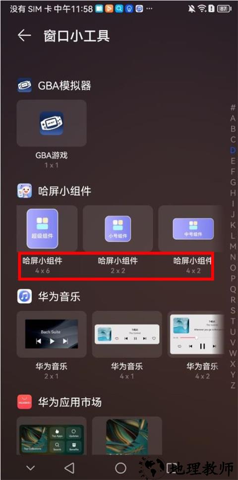 4、在工具列表里找到哈屏小组件,长按该组件将其添加到手机桌面。
