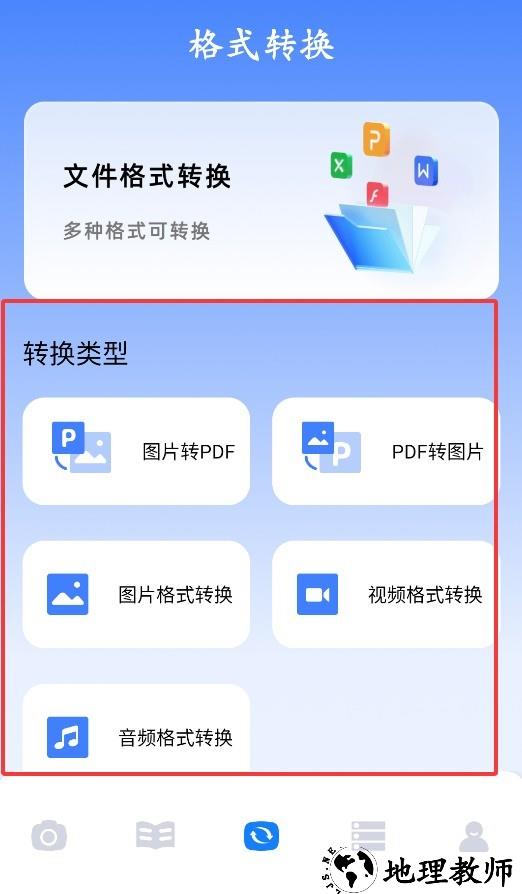 4、进入格式转换页面,可开展图片转pdf、PDF转图片、音视频格式转换等操作。