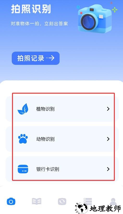 2、skrbt工具箱首页功能区,可调用植物识别、动物识别、银行卡识别等图像识别工具。