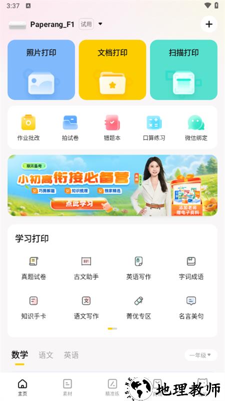 2、海量真题试卷:内置覆盖各年级、各科目的同步试卷资源,可根据地区和教材版本智能匹配,随时打印巩固练习。