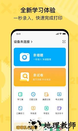 作业帮喵喵机是一款专为学习和日常打印需求设计的便携式错题打印应用,配合实体喵喵机设备使用,通过蓝牙连接,采用无墨热敏技术,实现快速、清晰的打印效果,整合了作业帮庞大的题库资源,支持错题整理、试卷打印、口算练习等功能。