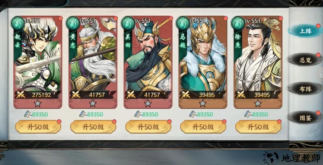 2、多元阵营体系:魏蜀吴三方势力各具特色,魏重控制爆发、蜀擅速攻推图、吴靠火攻持续输出,玩家可根据自身喜好与资源情况灵活选择发展路线。