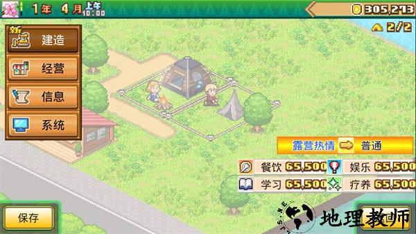 1、初期搭建基础营地:从两个帐篷起步,合理铺设道路,优先建设篝火与野炊区,为游客提供基本露营体验。
