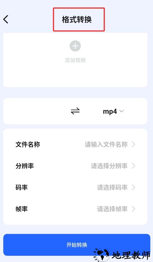 4、格式转换功能可将视频转换为MP4等格式,并自定义分辨率与码率参数。