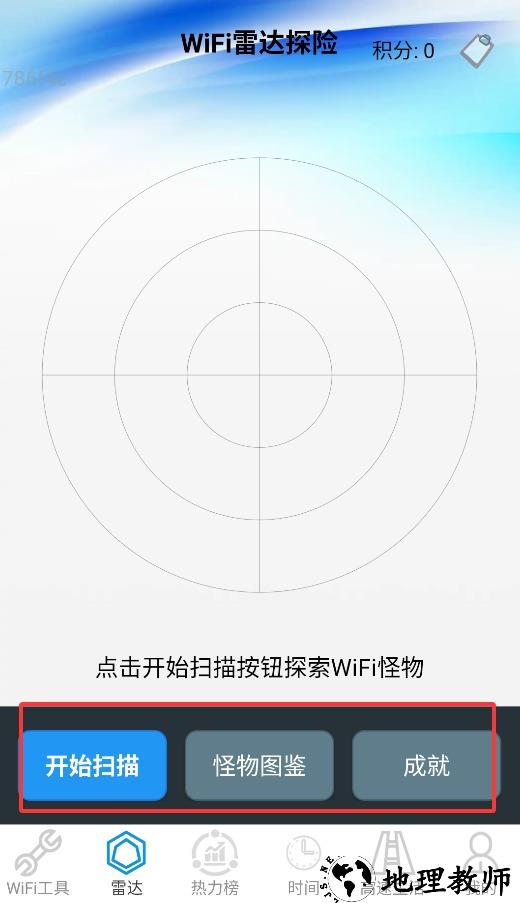 3、雷达扫描可探索周边WiFi信号分布,支持查看怪物图鉴与成就收集。