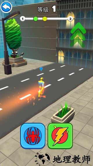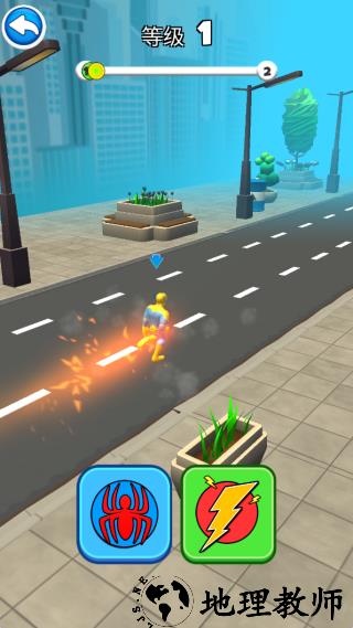 1、进入游戏可以化身超级英雄,在关卡里开启一场场欢乐奔跑闯关。