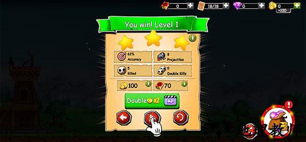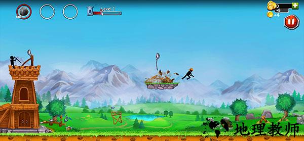 1、通过滑动屏幕来控制弹弓和选择的张力,精确计算投掷石块的角度进行发射;