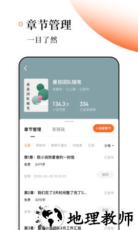 2. 作品管理:包括创建作品、创建章节、章节管理、分卷等功能,让作者可以高效地管理自己的作品。