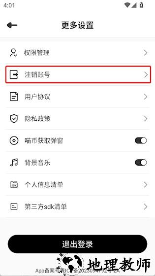 2、点击注销账号