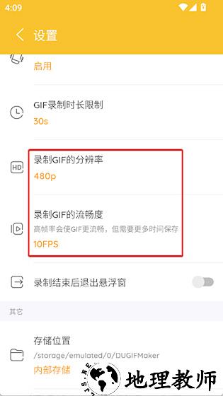 2、找到录制GIF的分辨率和帧率选项进行更改