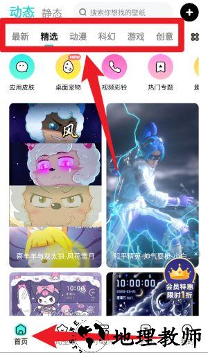 1、在首页中可通过顶部分类快速切换精选、动漫、科幻等壁纸类别,点击对应封面进入详情页浏览。