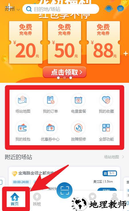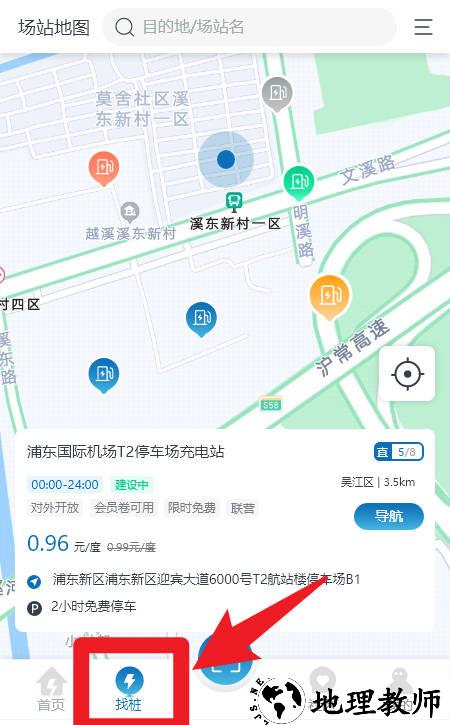 2、在找桩功能中,用户可以通过地图定位快速找到附近的充电站,查看充电桩数量与导航信息,方便规划行程。