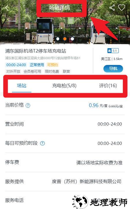 3、点击场站详情页可查看价格、营业时间、可用充电枪数量及用户评价,帮助车主选择最合适的充电站点。