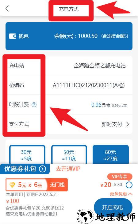 4、进入充电方式界面后,输入站点和枪编码即可开始充电,系统会显示计费规则与支付方式,确保费用透明。