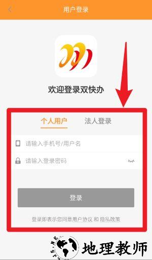 2、在登录界面可选择个人用户或法人登录身份,输入手机号和密码后点击登录即可进入平台使用各项服务。