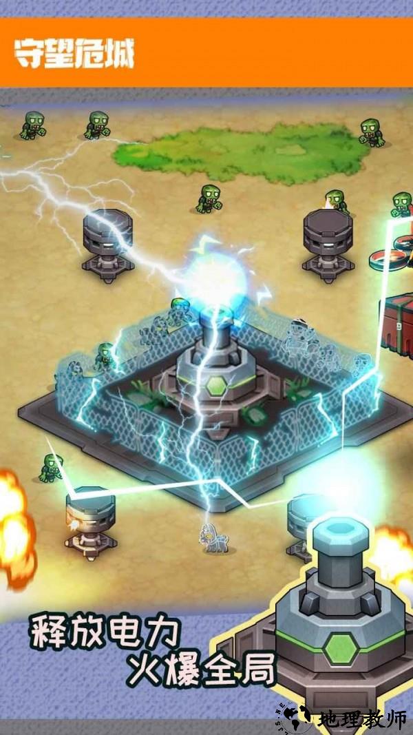 2. 塔防战斗:通过塔防战斗抵御变异丧尸的攻击,保护幸存者。