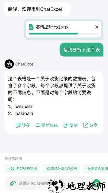 酷表ChatExcel自定义版是一款基于自然语言交互的智能表格处理安卓软件,由北京大学团队研发,旨在通过对话式操作彻底颠覆传统Excel使用模式。用户无需记忆复杂函数或公式,仅需输入日常语言指令即可完成数据清洗、公式计算、图表生成等核心功能。该软件支持csv、xls、xlsx等多格式文件处理,兼容多sheet表格同步操作,特别针对财务、人事、销售等高频数据处理场景设计,可一键生成动态趋势图、对比分析图等20余种专业图表,并支持导出符合行业标准的Excel文件。其核心创新在于将ai大模型与表格处理深度融合,通过语义理解技术实现“说人话办表格”的智能化操作,大幅降低Excel使用门槛。