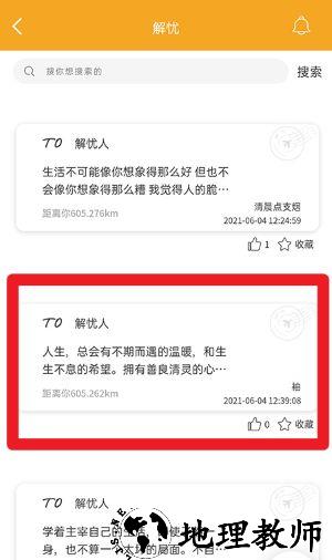 4、解忧模块提供正能量短句,支持收藏与点赞功能,帮助用户舒缓心情,提升情绪健康。