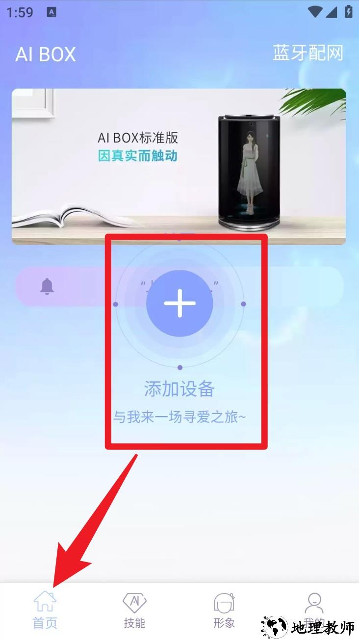 2. 进入首页后点击中间的+号图标,按照提示绑定你的智能语音设备。