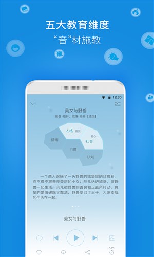 音乐音效烘托,凝聚成一个个临场感十足的趣味故事,帮助您的孩子插上想象的翅膀,进入生动的故事场景。