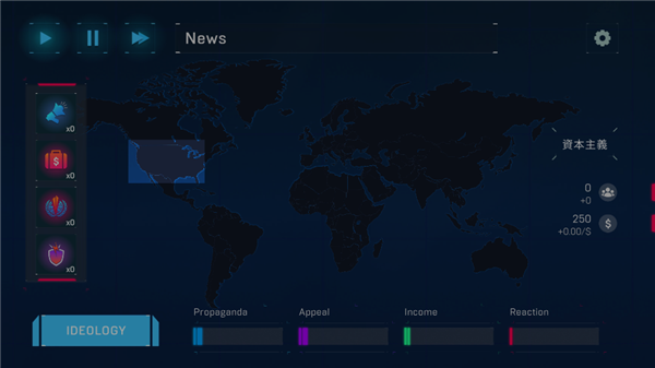 政权模拟器是一款策略养成趣味经营游戏,英文名为:Ideology Rush,玩家将扮演最高领袖,学习更多政治元素与相关知识,从最底层的国家开启培养,处理更多政务,规划最佳成长计划,招揽士兵组建强大军队,攻占城池扩建你的领土,打造最繁荣昌盛的帝国,化身为最优秀的国家领导者,感兴趣的朋友不要错过哦!