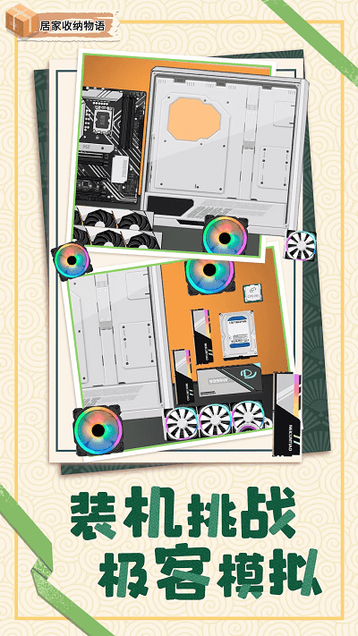 1. 主线剧情:玩家扮演一位新手收纳师,通过帮助客户整理杂乱空间(如单身公寓、猫咖、别墅)积累经验,逐步解锁更复杂的场景。例如初期需整理“猪猪女孩”的化妆台,移除刮胡刀并分类摆放化妆品;后期则需为科技爱好者组装电脑主机,连接显示器与键盘。