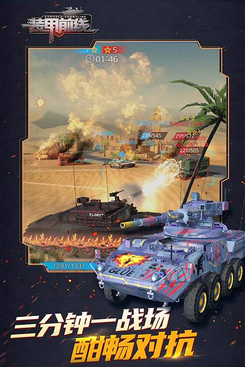 《装甲前线最新版》是一款以现代战争为背景的第三人称载具对战射击手游,由北京空中信使信息技术有限公司研发。游戏以Unity3D引擎打造,高度还原了全球现代陆战载具的细节与战场环境,玩家可操控坦克、装甲车、无人机等多样化武装载具,在3分钟快节奏的竞技对战中体验闪电战、装甲先锋、火力突袭等经典战术。游戏支持多人在线实时对战,提供荣誉猎杀、乱斗求生、能源攻防三大核心模式,并融入天梯匹配系统与载具升级改造机制,为玩家带来策略与操作并重的沉浸式战争体验。